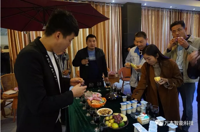 在熱烈的節日氛圍中,董事長王曉杰就萬杰智能下一步的戰略發展規劃和未來前景深入淺出的給大家做了匯報,將氣氛推向了新的高潮。未來萬杰智能將依托智能主食設備和互聯網技術發展”三產融合、五新并進“的新產業生態體系。