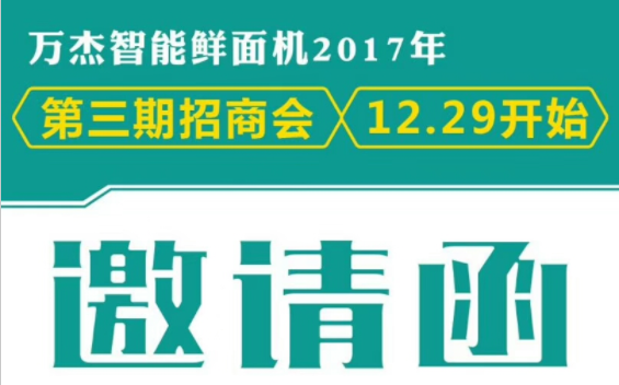 2017年即將過去,這一年,萬杰智能收獲滿滿,智能鮮面機商業(yè)模式逐漸成型,全國招商火爆持續(xù),熱度不減,萬杰智能衷心的感謝合作伙伴的支持與信任。乘著2017年精彩不斷的“尾巴”,為回饋客戶的期待,萬杰智能現(xiàn)決定正式召開第三期招商會。 ★時間:2017年12月29日(本周五)。 ★地點:萬杰智能總部。 ★內(nèi)容:萬杰智能將帶您參觀工廠、進行項目解讀、商務(wù)洽談,為您全面展示智能鮮面機樣板市場及前兩期合伙人的運營情況等。 ★聯(lián)系電話:400-667-9528;156-1726-7952。 搜索 復(fù)制 |