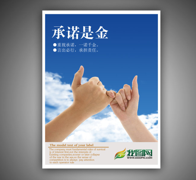 言必行,行必果,真正的承諾是行而有果,言為果之始,果為言之歸。承諾創造了別人度量自己的一個標準,承諾是體現自己言行一致的方式――告訴別人我說的宣言,讓別人來檢視自己說的和做的是否一樣。有人會說了:“既然承諾這么重要,那我只做不說,不就行了?”拒絕“諾”的人,走到了另外一個極端上去了,不敢“諾”,就是不敢宣言一個標準出來,不讓別人有評估自己的機會。逃避承諾只能說明對自己沒有信心,看輕自己的能量,破壞承諾則是破壞自己做人的誠信,兩者皆不可取。